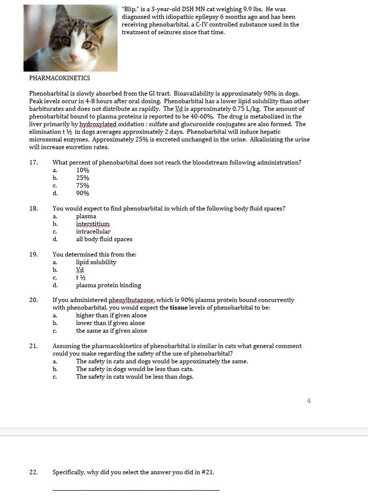 Solved Blip Is A 3 Year Old Dsh Mn Cat Weighing 9 9 Lbs Chegg Com